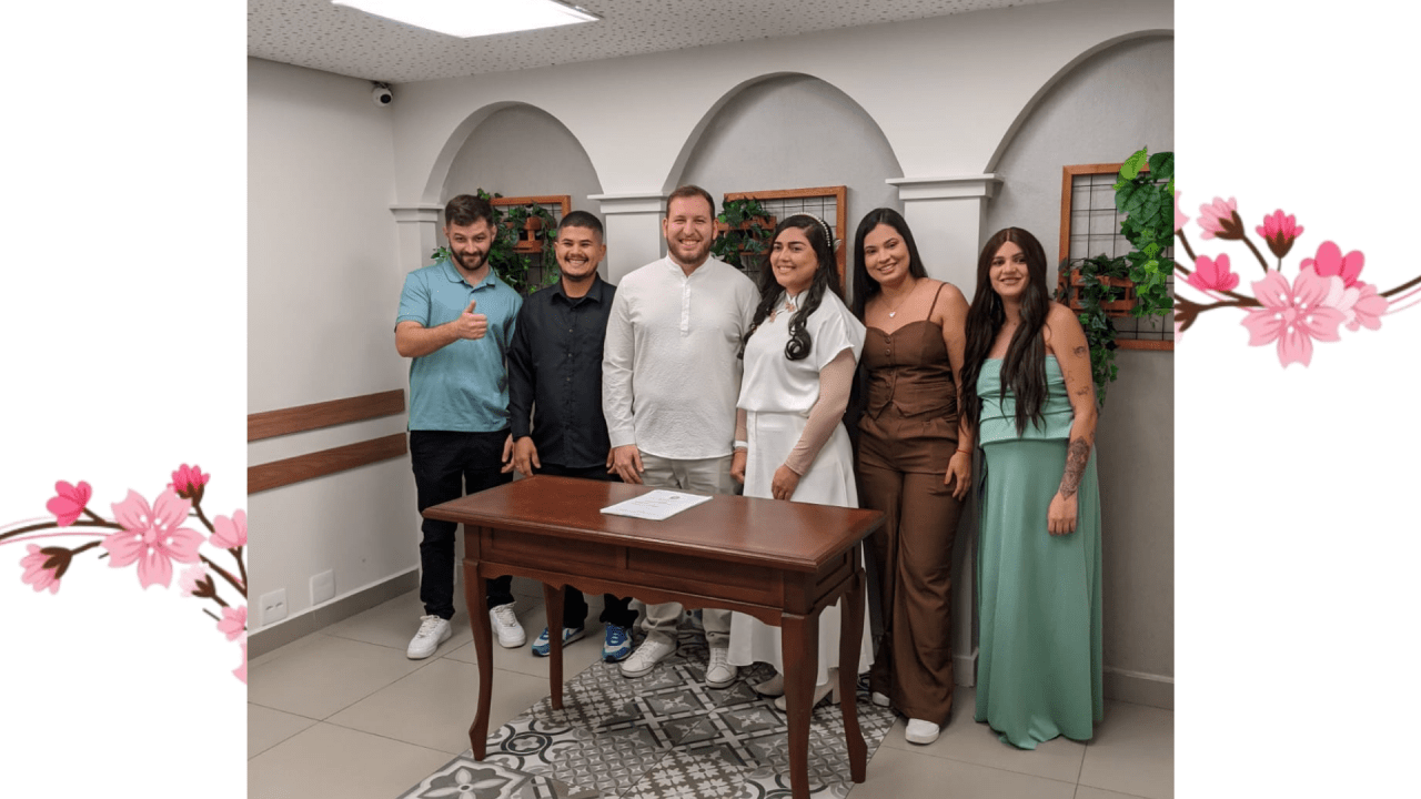 Começamos a namorar, e no ano seguinte decidimos juntar nossas vidas. Em 2025 oficializamos nossa união no civil, e agora, em 2026, chegou o momento de celebrar o nosso amor diante de Deus, da nossa família e dos nossos amigos mais queridos.